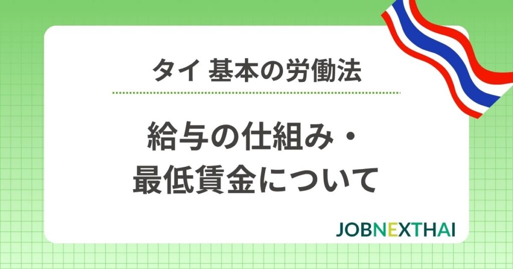 - タイ労働法│給与の仕組み・最低賃金についてタイ就職において給与の仕組みや最低賃金は最も重要な項目のひとつです。この記事ではタイ労働法(労働者保護法)内に記載のある賃金の仕組みや給与の支払いルールについてまとめました。タイで日本人が働くうえで理解しておきたい外国人の最低賃金についても詳しく解説しています。